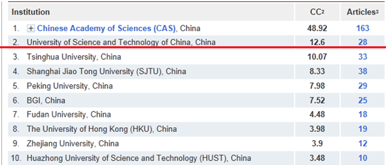 此外,自然出版指数还进行了2012 Global Top100科研机构排名,中国科大位居全球第73名,中国科学院(12名)、清华大学(89名)、北京大学(93名)也分别入选该榜单。