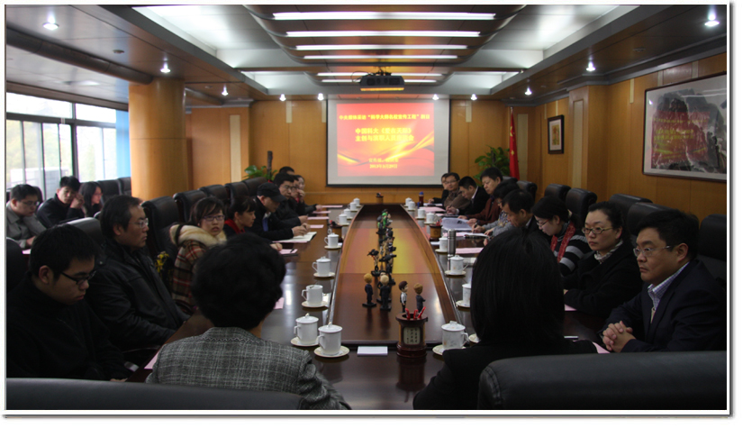 此次赴我校采访的媒体人员包括人民日报社会部高级记者蒋建科、新华社记者余晓洁、光明日报科技部主编胡其峰、科技日报记者刘莉、中国科学报新闻部副主任潘希。《爱在天际》总导演与总编剧郁百杨,校党委宣传部、学生工作部(处)、校团委负责人,音乐剧中主要演员参加了上午的座谈会。我校化学物理系党总支书记闫立峰、化学物理系教授陈从香、近代力学系教授黄吉虎、社会热心人士王铁权及观看过演出的部分学生参加了下午的座谈会。会议由校团委副书记杨晓果主持。