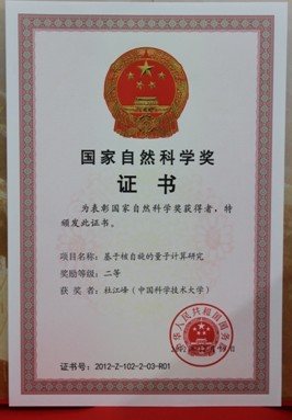 由我校合肥微尺度物质科学国家实验室杜江峰教授独立完成的“基于核自旋的量子计算研究”主要围绕量子计算的能力、机理和实现途径,对基于核自旋体系量子调控的量子计算开展了基础性、前瞻性和战略性研究,取得了一系列国际领先的研究成果。主要科学发现包括:(1)在国际上首次实验实现了量子博弈,表明了量子计算可以解决经典计算无法处理的难题;(2)发展了新的实验方法,率先完成了多比特量子逻辑门和多个高效量子算法,在量子计算高效率的机理问题上提出了新的学术观点并实验验证;(3)实验实现了完全基于量子力学特性的两类抗噪声量子计算新模型,完成了量子绝热条件非充要性的实验证明以及量子混态几何相的首次实验观测。该项目在《物理评论快报》等国际权威学术期刊上发表了一系列高水平研究论文,受到了国际学术界的高度重视,相关成果曾被英国《自然》杂志、美国物理学会新闻以及欧洲物理学会新闻等国际学术媒体广泛报道。