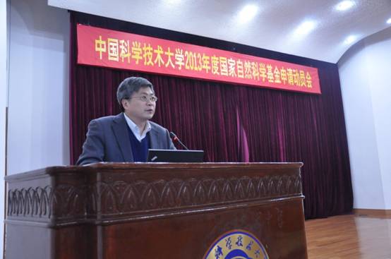 为做好我校2013年度国家自然科学基金项目的申报工作,调动广大科技工作者申报国家基金的积极性,2012年12月27日下午,中国科学技术大学2013年度国家自然科学基金申报动员大会在水上报告厅召开。国家自然科学基金委计划局郑永和副局长、我校朱长飞副校长出席了大会,参会教师共300余人。会议由朱长飞副校长主持。