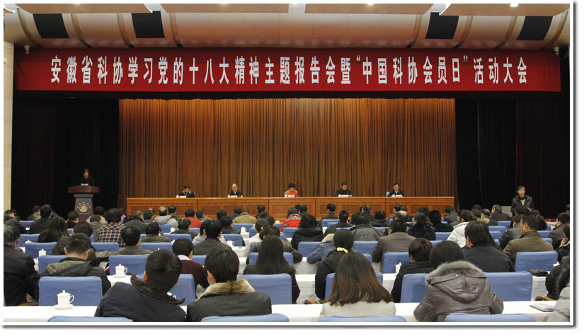 12月19日下午,由省科协举办的“省科协学习党的十八大精神主题报告会暨中国科协会员日表彰大会”在稻香楼宾馆隆重举行,会上对第三届安徽省百所高校百万大学生科普创意创新大赛的获奖者与获奖单位进行了表彰。我校党委副书记鹿明与获奖同学代表张军出席此次大会。