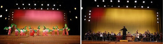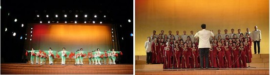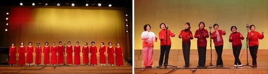 宋振玉等老同志带来精彩的女生小合唱《荷花颂》、《红莓花儿开》后,金秋艺术团戏曲队表演的戏曲联唱,融合了京剧、越剧、黄梅戏等剧种,给广大戏曲爱好者提供了一次视听盛宴。由马克泉等表演的《木兰双扇》是集健身、舞蹈于一体的艺术,既有美感,又有健身之效。民乐合奏《彩云追月》、《花儿与少年》是由金秋艺术团民乐队集体表演,由著名指挥家陈海昌先生指挥。