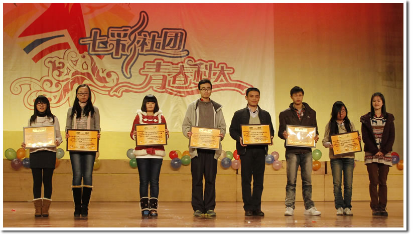 闭幕式晚会上还有个必不可少的环节,那就是优秀项目颁奖。在社团文化节一个多月的时间内,各社团所举办的活动,都会进行自评、观众评等一系列量化评比,最后通过全校同学网络投票的形式,综合评选出本届社团文化节优秀项目的各级奖项。