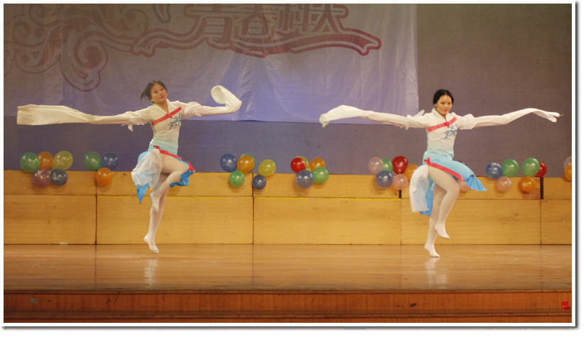 本校学生社团的精彩表演自不必说,各兄弟院校友情献上的节目也是异彩纷呈。安徽医学高等专科学校大学生艺术团带来了民族舞《惊鸿》,翩飞的长袖和优美的音乐,征服了现场的每一个观众;安徽建筑工业学院街舞社的表演极富感染力,成为该场晚会的一大亮点;合肥师范学院徽韵戏曲协会带来的戏曲串烧,将传统的戏曲表演融合了现代元素,让同学们对中华文化的精髓有了新的认识。