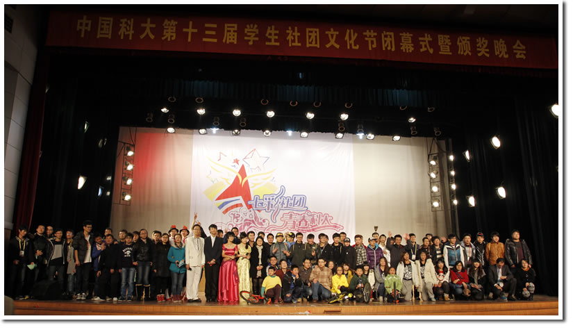 12月2日晚,我校第十三届学生社团文化节闭幕式暨颁奖晚会在东区大礼堂召开,同时也标志着主题为“七彩社团,青春科大”的第十三届学生社团文化节圆满落幕。