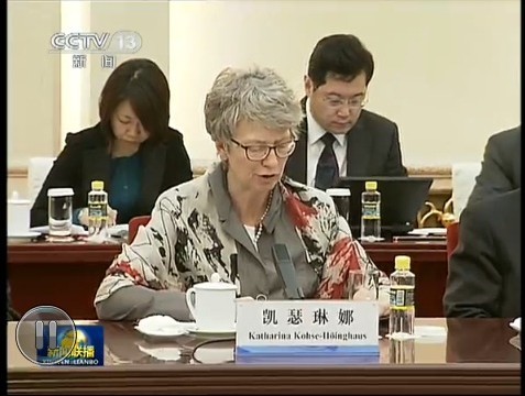 凯瑟琳娜?科瑟-赫英郝斯教授在座谈会上发言(央视新闻视频截图)