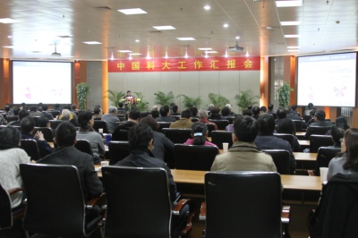 会上,侯建国校长代表校党政领导班子作了工作汇报,介绍了学校的办学理念与发展战略,重点报告了2008年以来学校各方面的工作进展,并介绍了未来的发展设想与展望。他说,学校新一届领导班子成立以来,在认真总结50年办学经验的基础上,集思广益,进一步明确了世界一流大学的建设目标,提出了新时期学校的发展战略和“135”创新发展工作思路。