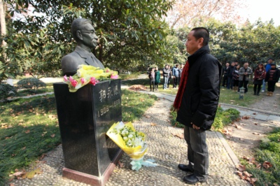 12月5日郭永怀先生逝世44周年纪念日当天的中午,《爱在天际》剧组来到郭永怀先生的塑像前献花,表达了对郭先生深切的缅怀与崇敬。