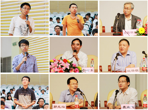 在师生交流环节,新同学就专业兴趣、英才班情况、发展前景等向三位院士及院系领导进行了咨询。欧阳钟灿院士、沈保根院士、郭光灿院士分别以自己人生奋斗经历为例,提醒同学们要重视培养自身兴趣爱好、踏实学习、打好基础,奋力拼搏定会取得非凡成就。