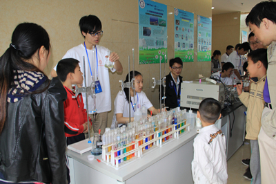 在西区学生活动中心,报告厅播放着关于绿色生态环保的动漫视频。在东活和西活广场,一系列趣味科学小实验——杯中的水倒流、分合的水流、漂浮的针、烧不断的棉线、会拐弯的光、让杯子隐形、烟雾瀑布、站立的易拉罐等,吸引了许多小朋友好奇的目光。此外,还安排了趣味有奖问答和趣味科普展览,帮助大家感受科技魅力、享受健康生活、认识自然灾害、呵护我们的美丽家园。“太有趣了,下次我还要再来!”合肥市宁溪小学三年级学生崔子涵兴奋地说。