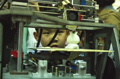 在工程科学学院科普点,未来的制造技术——3D打印技术也是第一次与公众见面,吸引了很多参观者。据志愿者介绍,3D打印机与普通打印机工作原理基本相同,只是打印材料有些不同,普通打印机的打印材料是墨水和纸张,而3D打印机内装有金属、陶瓷、塑料、砂等实实在在的“打印材料”,打印机与电脑连接后,通过电脑控制可以把“打印材料”一层层叠加起来,最终把计算机上的蓝图变成实物。