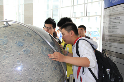 在地球和空间科学学院科普点,安排了《空间天气》科普展览、虚拟太阳观测台和演示、空间探测实验室参观。由副院长汪毓明教授做的空间天气科普讲座,吸引了大量小听众,会议室座无虚席。该科普点还在博物馆举办了《跨越两极科考展——讲述南极、北极、西沙的故事》;在水上报告厅举办了《地球两极——人类未知的世界》报告会,由国家海洋局极地考察办公室吴军副主任为大家介绍我国极地考察事业的过去、现在和未来。报告会后,吴军和地空学院孙立广教授、极地办徐世杰处长、以及两位刚刚参加完第30次南极科考的科大学生在现场跟大家进一步交流,解答大家提出的各种问题。