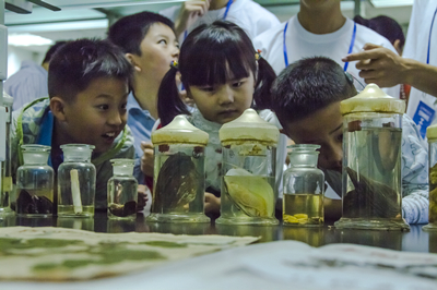 在生命科学技术科普点,生命科学实验教学中心安排了动植物标本展示、生物学相关科普宣传片、公众普及生命科学相关知识、生命科学实验平台及其应用范围展示、iGEM团队展示基因操作等内容。此外还安排了生命科学类互动小游戏,展示了部分显微摄影作品。“生命科学神奇无比。” 来自合肥第50中学八年级的靳安东同学参观结束后兴奋地对记者说。