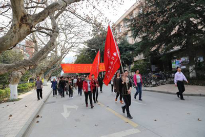 作为庆祝“三·八”妇女节的重头戏,3月8日下午在校东区运动场举行了女教职工集体健身活动。身着五彩艳装的女教职工们兴高采烈地成群结队来到大操场,许武书记代表学校党政领导班子向全体女教职工致以节日的问候,感谢女教职工们为学校的建设与发展付出的辛劳和努力。鹿明副书记也亲切问候了大家,希望大家再接再厉为学校做出更多更好的成绩。随着鹿明副书记的号令,集体健身走队伍浩浩荡荡地出发了。女教职工们一路欢声笑语,走出青春,走出健康,走出了女性的风采。学校的铿锵玫瑰们集体健步走,成为校园靓丽的景致。工会主席龚流柱主持了活动仪式。