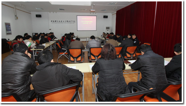 教务处老师介绍了本科生课程网上评教有关工作,校医院院长助理周鹏通报了新的《医保手册》的相关事宜,核科学技术学院老师作了境外学习交流。