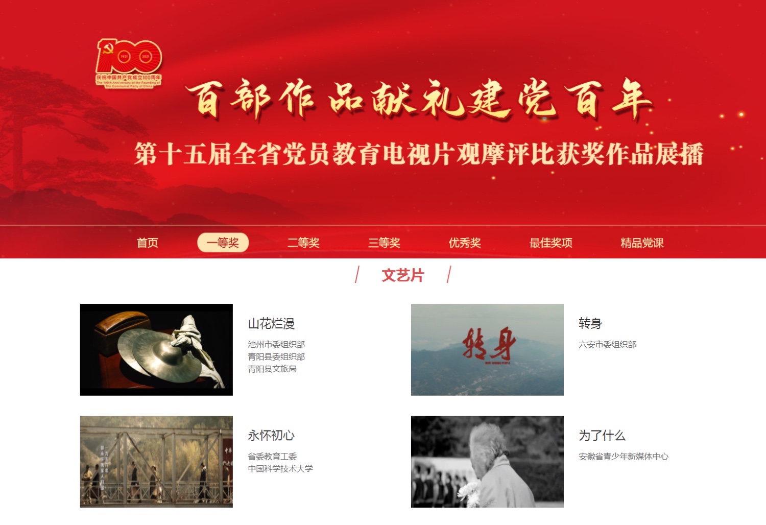 为隆重庆祝中国共产党成立100周年,安徽省委组织部会同共青团安徽省委,联合举办第十五届全省党员教育电视片观摩评比活动。在本次活动中,我校报送的《永怀初心》微电影荣获一等奖。