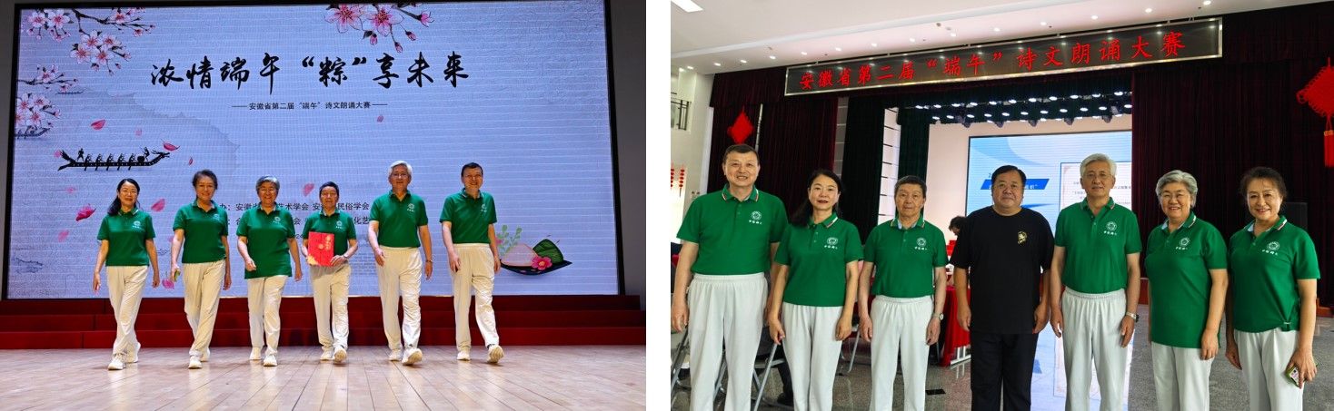 6月16日,金秋艺术团的老师们赴合肥市图书馆参与安徽省朗诵艺术学会和安徽省民俗学会主办的浓情端午“粽”享未来——安徽省第二届端午诗文朗诵大赛,老同志凭借优异表现赢得在场评委和观众的一致认可,最终荣获评委会特别奖。