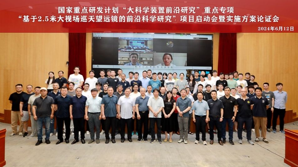6月12日,由我校孔旭教授主持的“十四五”国家重点研发计划“大科学装置前沿研究”重点专项——“基于2.5米大视场巡天望远镜的前沿科学研究”项目启动会暨实施方案论证会在我校召开。项目参与单位包括中国科学技术大学、中国科学院紫金山天文台、中国科学院国家天文台和深空探测实验室(天都实验室)。项目将利用已经建成的中国科学技术大学-紫金山天文台2.5米大视场巡天望远镜(即墨子巡天望远镜,WFST),开展大规模深度时域巡天观测,研究活动星系核、黑洞潮汐撕裂恒星事件和超新星等高能时域天文现象,为理解极端条件下的物理过程提供重要的观测约束;同时开展太阳系天体普查监测、银河系和近邻宇宙的精细结构刻画,为研究太阳系天体形成和演化、小尺度星系形成和演化机制提供约束。