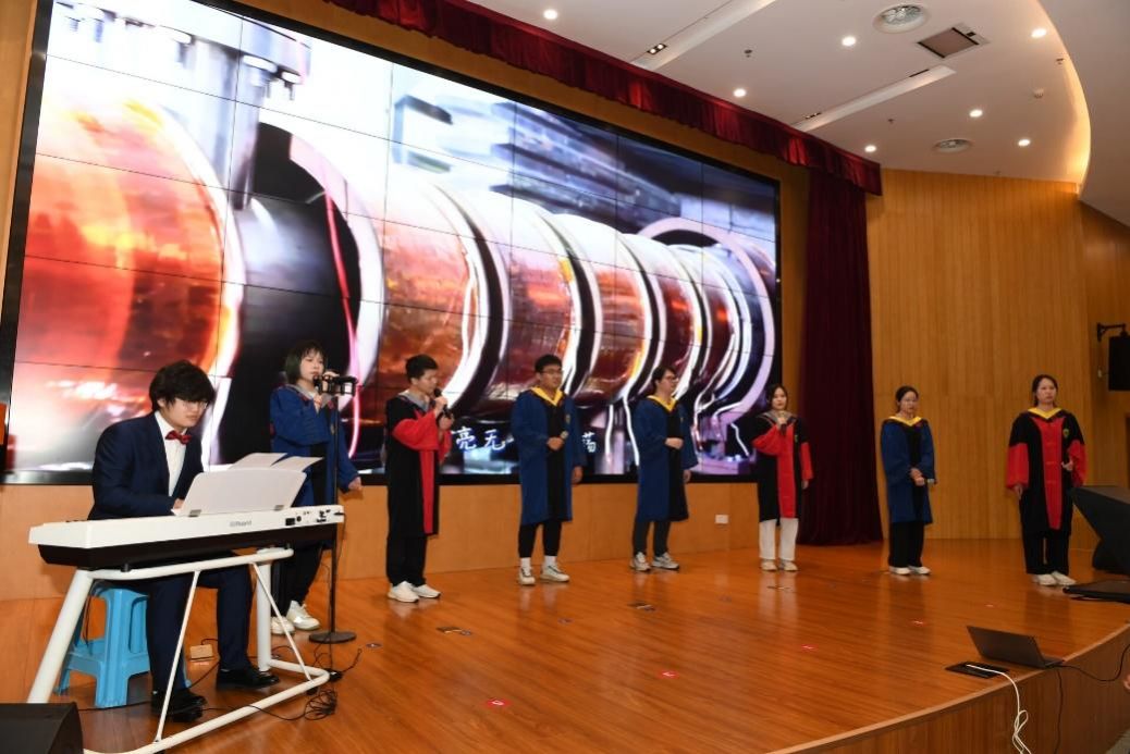 毕业生代表表演小合唱歌曲《这世界那么多人》,送给即将启程的同学,他们将离别的不舍和留恋化作祝福,道阻且长,行则将至,行而不辍,未来可期。