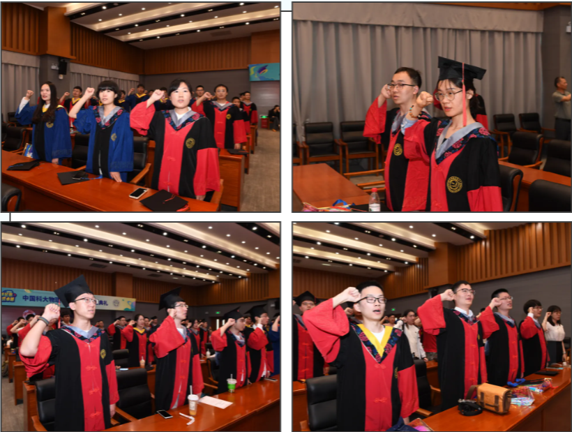 仪式上,周正威教授带领毕业生庄严宣誓:“感恩父母养育,感谢导师教诲,不忘母校培养。我们坚守母校信念,热爱科学、崇尚真理;我们传承母校精神,科教报国、追求卓越。我们用激情和智慧建设祖国,用责任和行动回馈社会,用成就和硕果回报母校”。