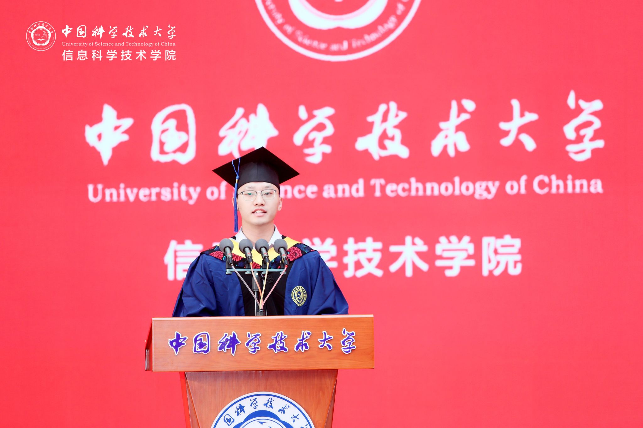 锦瑟年华,书生意气曾纵马;风华正茂,才俊携手共天涯。本科生毕业生代表白寅岐和研究生毕业生代表范孝帅相继发言。白寅岐在发言中回顾了四年的大学时光,表达了对母校、师长和同窗的深厚感情。范孝帅则分享了研究生阶段的科研经历和成长感悟,并对未来的道路充满信心。当好新时代的追梦人,既要有鲲鹏展翅冲霄汉的远大理想,更要有不忘初心担使命的实际行动。青年一代,有理想、有本领、有担当,国家就有前途,民族就有希望。新一批信息学院毕业生们将怀着自己的热爱与梦想出发,实现自己的别样青春,续写科大人的荣光。