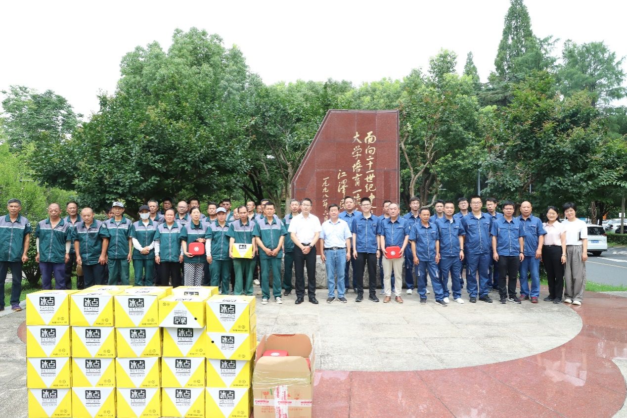 周丛照对大家在炎炎夏日仍坚守岗位、默默奉献的劳动精神表示赞扬,对他们为学校各项事业发展的辛勤付出表示感谢,亲切叮嘱大家在暑期高温工作期间要时刻注意防暑降温、劳逸结合,并为大家送上防暑降温物品。