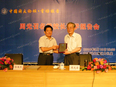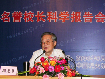 2004年9月10日,中国科大名誉校长、中国科协主席、中国科学院院士周光召为“中国科大论坛”作首场报告。