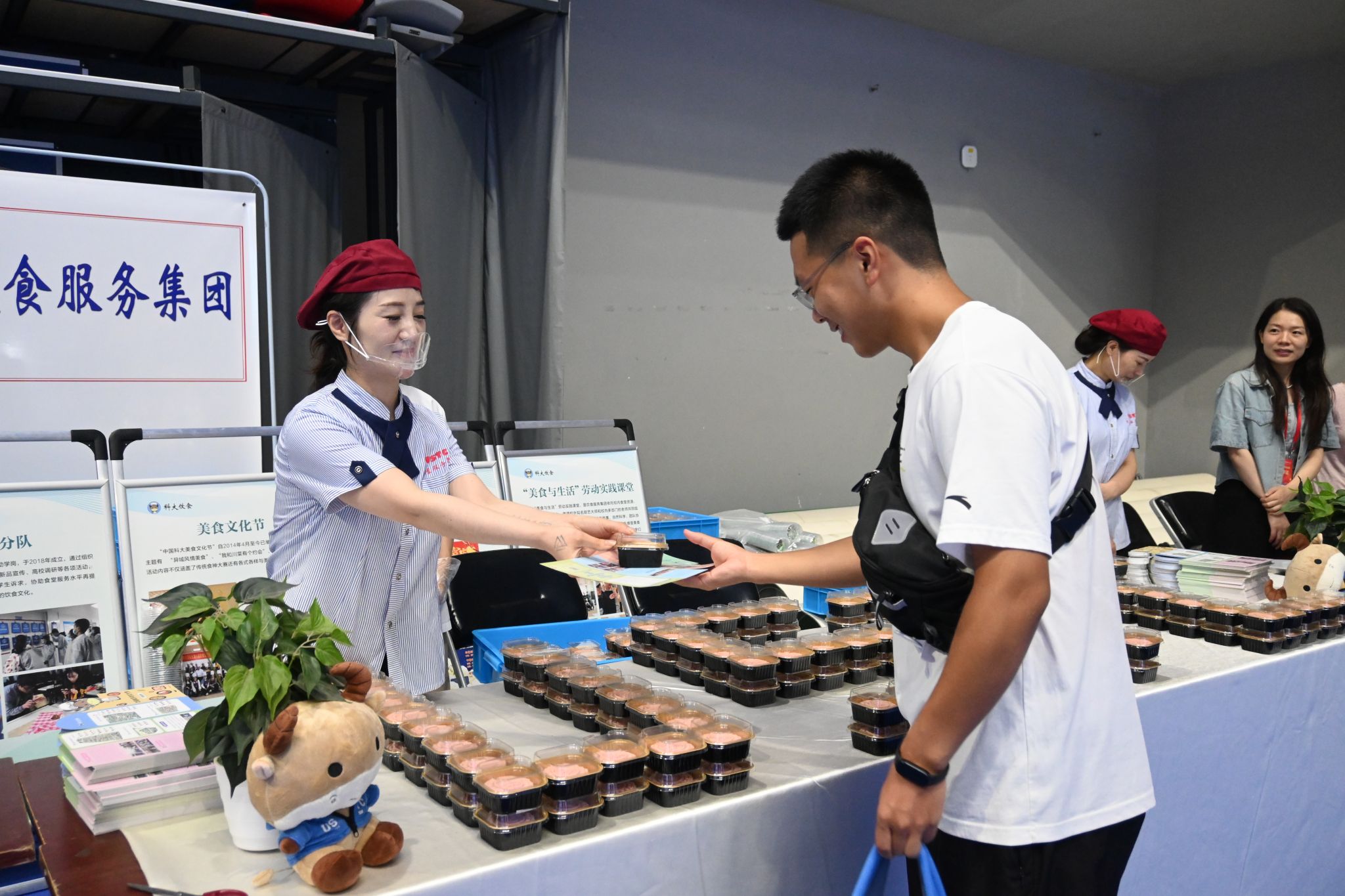 各院系老师与志愿者早已在精心布置的迎新点迎接各位新同学:少年班学院设置了“学生证”样式的拍照背景墙;数学科学学院的吉祥物“数分熊”与新朋友们热情互动;计算机科学与技术学院制作了宣传页,扫码即可加入群聊了解“入党那些事儿”;环境科学与工程系为每位同学准备了印有姓名的定制可乐和拍照展板……