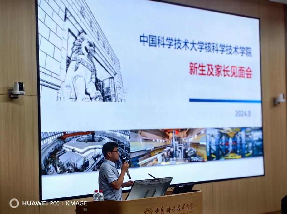 冷用斌代表学院领导班子向新生及家长介绍了学院基本情况、特色、文化等内容。他强调,核科学与技术是典型的交叉学科,可以满足同学们多样化的学术兴趣。中国科大核科学技术学院以依托大科学装置为鲜明特色,注重科学与技术(工程)的结合,致力于培养面向国之重器的复合型人才。他鼓励同学们在学业之余,积极参加学术讲座拓宽视野,并期望大家在未来的4-10年里,通过努力学习和深入研究,在核科学领域发挥自身才能,为“大国重器”的建设做出贡献。