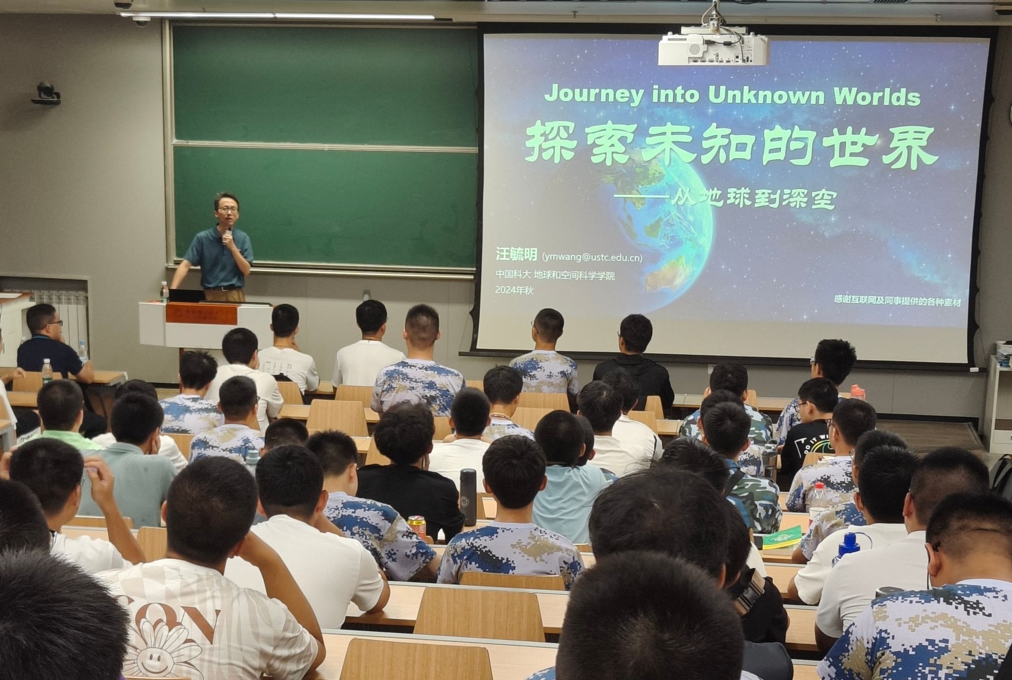 8月27日晚,地球和空间科学学院在第五教学楼5104教室举办本科新生“入学第一课”报告会,校党委常委、地球和空间科学学院执行院长汪毓明教授为同学们作题为《探索未知的世界——从地球到深空》的报告,学院党委副书记熊成,2024级本科班主任王文忠、邹宇飞、郝记华以及108位本科新生参加报告会。