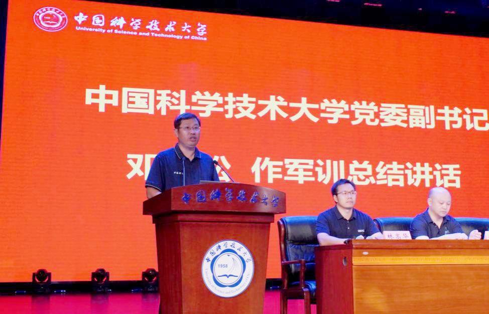 邓建松在总结讲话中,对承训单位的领导和教官致以崇高敬意与诚挚感谢,对在军训中取得优异成绩的同学们表示热烈祝贺,对为此次军训工作付出辛勤劳动的老师们和学生志愿者表示衷心感谢。他指出,今年正值新中国成立75周年和我国第一颗原子弹爆炸成功60周年,也是我校与承训单位军民共建的第29年,希望双方共同牢记习近平总书记嘱托,共同为国家和地方经济社会做出更大贡献。邓建松寄语同学们,保持与发扬军训中培养出来的好思想、好作风,将团结协作精神、强烈的集体荣誉感贯穿大学生活的始终,按照习近平总书记的要求做“有理想、有追求的大学生,做有担当、有作为的大学生,做有品质、有修养的大学生”,为祖国科技事业发展和中华民族伟大复兴贡献力量!