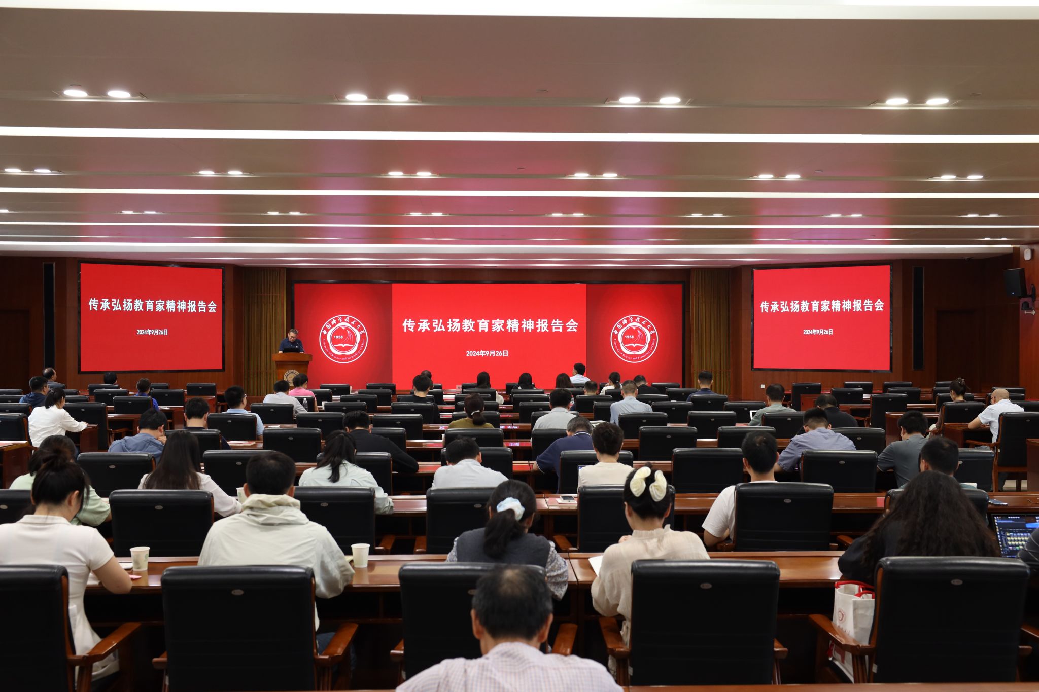 9月是我校的校风传承月。为深入学习贯彻习近平总书记在全国教育大会上重要讲话精神,传承“勤奋学习、红专并进”的优良校风,9月26日下午,学校举行传承弘扬教育家精神报告会,特别邀请今年获得安徽省教书育人楷模、安徽省优秀教师荣誉的工程科学学院教授、执行院长吴恒安,数学科学学院教授欧阳毅作专题报告。校党委常委、宣传部部长王伟主持报告会。