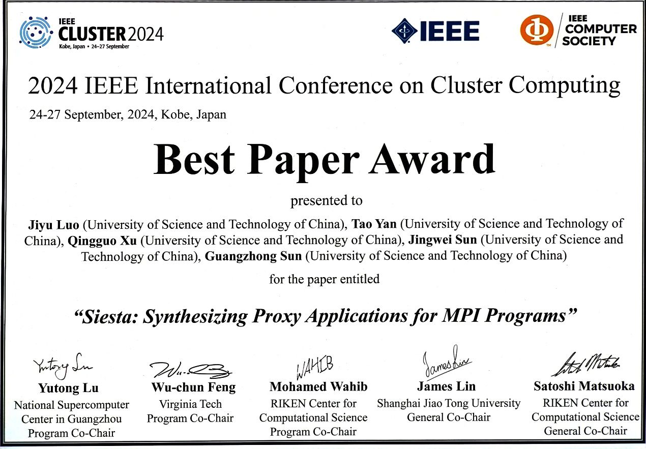 中国科大研究团队荣获IEEE Cluster 2024最佳论文奖