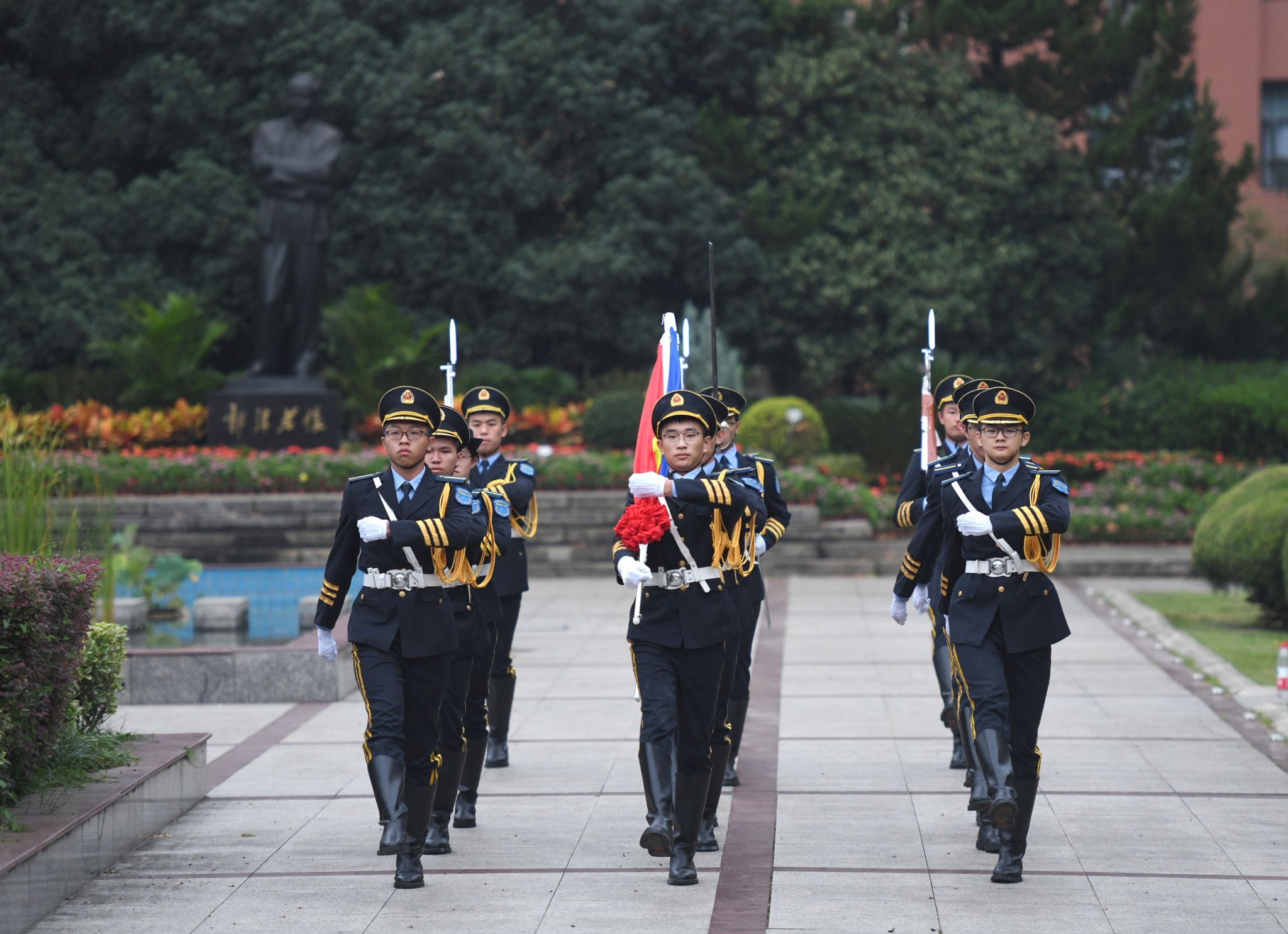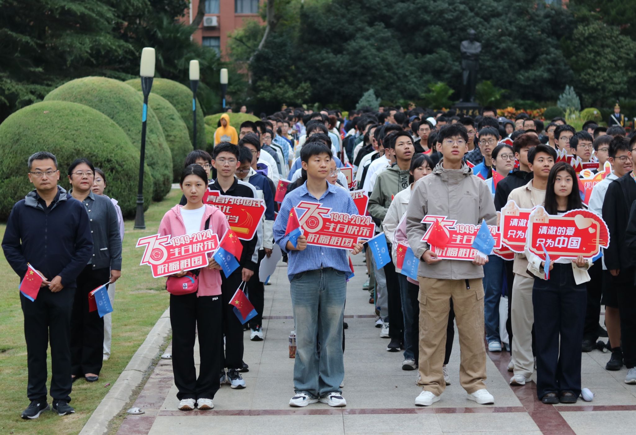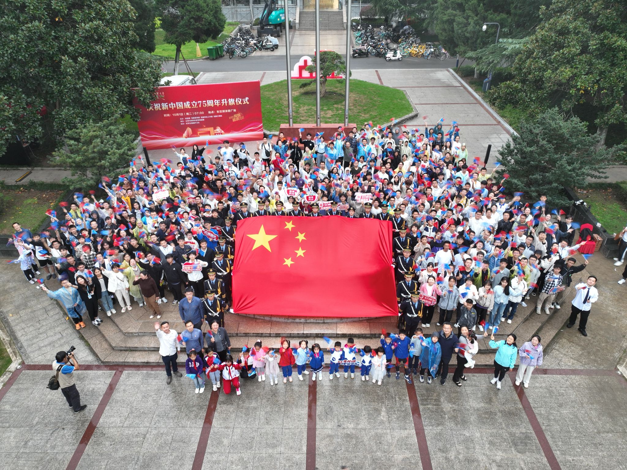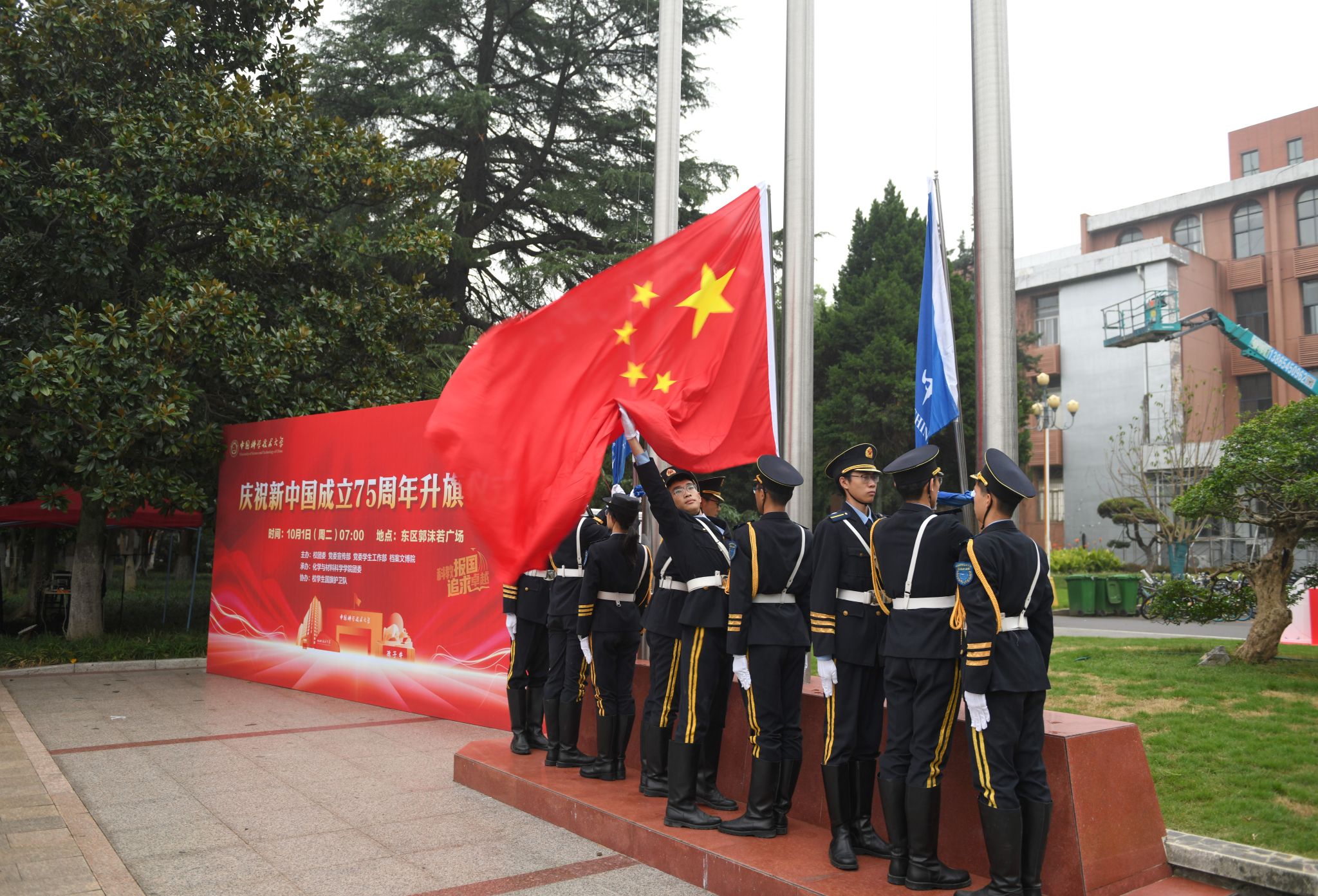 礼赞新中国、奋进新时代。为庆祝中华人民共和国成立75周年,激励和引导广大师生大力弘扬以爱国主义为核心的伟大民族精神,奋力谱写以中国式现代化全面推进强国建设、民族复兴伟业的壮丽篇章,10月1日清晨,学校在郭沫若广场举行庆祝中华人民共和国成立75周年升旗仪式。全校约500名师生代表自发前往现场观礼。