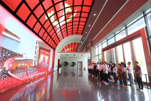座谈会后,中国建行总行平台运营中心第十党支部与中国科大国金院教工党支部一同前往安徽省党风廉政建设教育基地参观。在解说员的指引下,全体党员先后参观了以“永远在路上”为主题的“纪律立党·从严治党”“廉润江淮·清风扬帆”“以案为鉴·警钟长鸣”及“不忘初心·永葆清廉”四个展厅,回顾了中国共产党筚路蓝缕的百年纪律建设史,认真学习了安徽省全面从严治党、党风廉政建设和反腐败斗争的丰硕成果。一幅幅生动详实的图片、一桩桩触目惊心的警示案例、一幕幕声泪俱下的忏悔视频、一句句发人深省的廉政警语,引导党员们知敬畏、存戒惧、守底线。最后,崔嵩带领全体党员干部面向党旗,重温入党誓词,用铮铮誓言彰显作为共产党员的初心和使命。