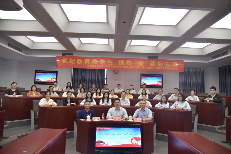 为持续深化党纪学习教育,进一步发挥党建共建示范引领作用,加强中国建设银行总行平台运营中心与中国科大国际金融研究院的银院合作,以铁纪清风护航银校高质量发展,中国建设银行总行平台运营中心第十党支部与中国科大国际金融研究院教工党支部于9月25日下午开展党纪学习教育实践暨联学共建活动。