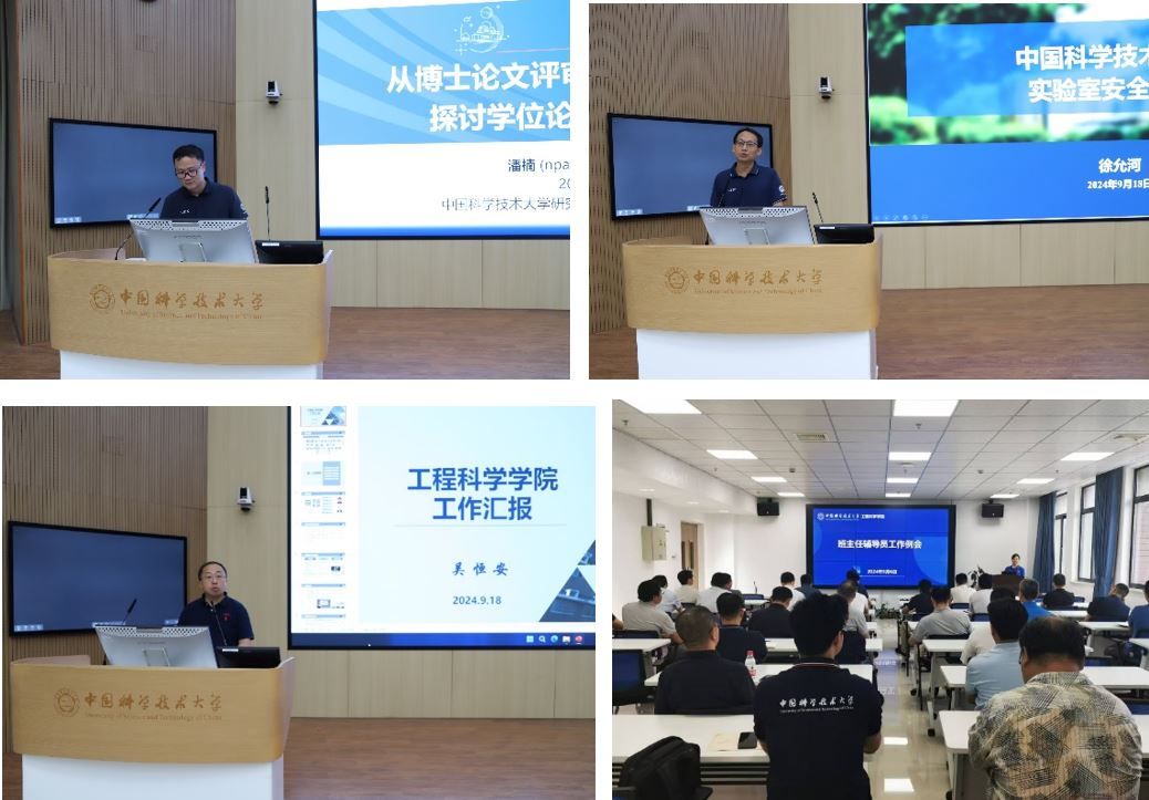 教师节前夕,院党委副书记赵凯和牟玲召开班主任辅导员工作会议,就学生工作中的校风传承、主题教育、学习实践、英才班管理、心理健康和各类安全教育等工作进行专题培训,为班主任、尤其是新任班主任提供经验指导。
