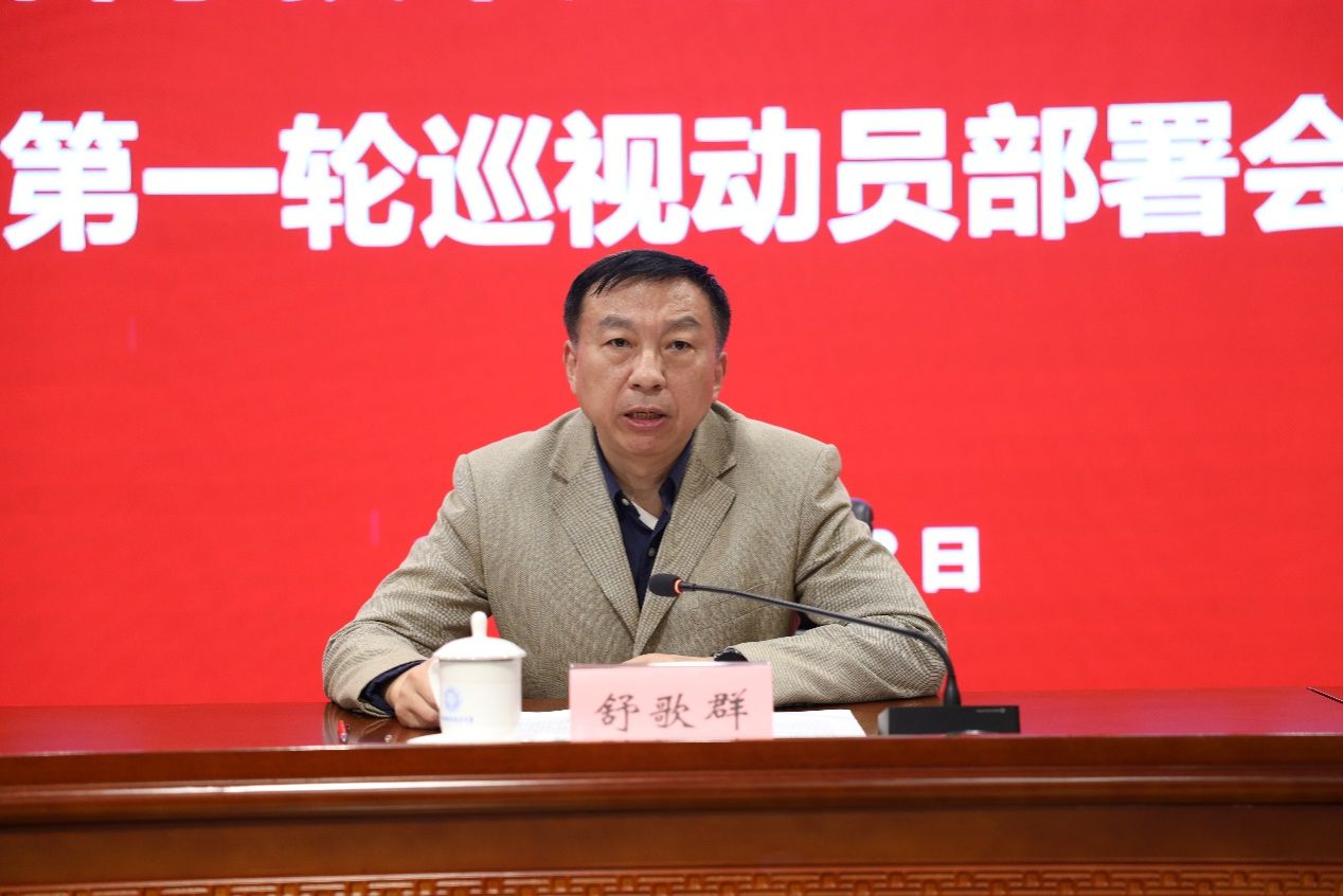 舒歌群强调,本轮巡视是第十三届党委巡视的开局之举,既安排了常规巡视,也同步开展专项巡视,要全面贯彻巡视工作方针,守正创新,勇于亮剑,精准监督,始终坚持问题导向,提高精准发现问题的能力水平;要紧盯“一把手”和“关键少数”,对被巡视单位领导班子进行全方位“政治体检”,把“一把手”专题材料写准写透写实;要更加突出标本兼治,紧盯巡视整改和成果运用,着重对落实中央巡视整改、上一轮校内巡视整改、中央审计整改和校内审计整改任务情况进行监督检查,以高质量整改推动高质量发展。