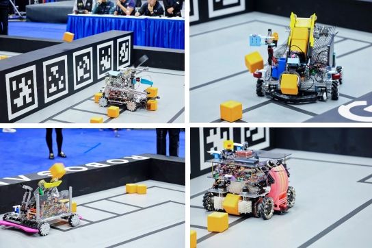 随后的四强争霸赛中,“寄存器队”不敌“红绿蓝黑队”,无缘前三;“红绿蓝黑队”面对劲敌“农场主队”表现得沉着冷静,抓住对方机器人出现短暂故障的机会,快速投掷矿石拿下本场对决,从四强积分垫底队伍成功突围至冠军争夺战。而“农场主队”也以其较为独特的机器人抓取和投掷机构设计,获得本届RoboGame机器人大赛最佳创意奖。