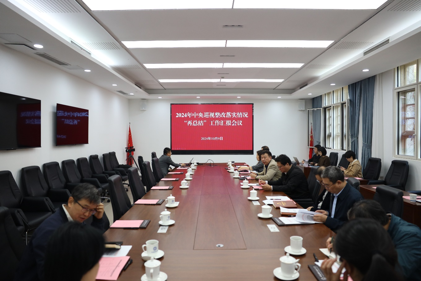 10月9日、12日,校党委召开2024年中央巡视整改落实情况“再总结”工作汇报会,党委书记舒歌群主持会议。校领导蒋一、刘浏、邓建松、李峰、王伟,以及党政办公室、党委组织部、党委巡视工作办公室、纪检监察机构负责人出席会议。