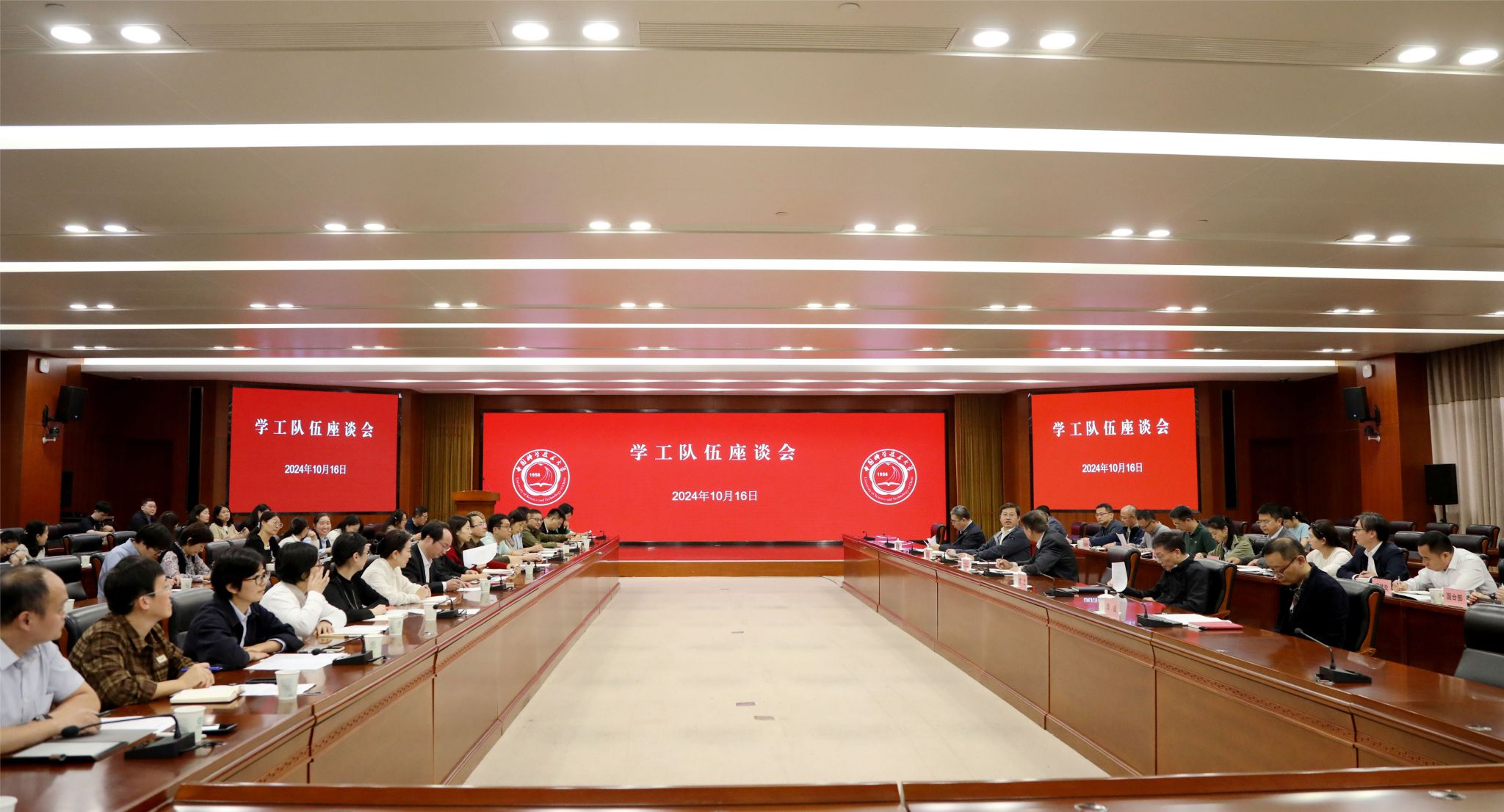 10月16日下午,学校在东区师生活动中心五楼国际会议厅召开学生工作队伍座谈会。校党委书记舒歌群,校长、党委副书记常进,校领导李峰、王伟出席会议,学校相关职能部门负责人,各学院学生工作负责人,科教融合学院代表,辅导员、班主任、心理咨询师、学业指导教师代表等参加座谈会。校党委副书记邓建松主持会议。