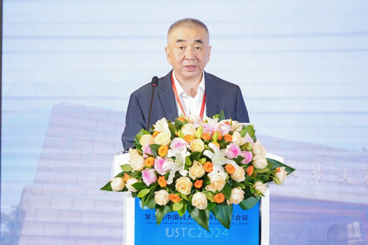 刘同柱在致辞中指出,习近平总书记在党的二十届三中全会《决定》中提出,实施健康优先发展战略。近年来,在省委、省政府坚强领导下,在中国科大和各位院士、专家关心支持下,省卫生健康委锚定健康安徽建设目标,聚力提升医学学科发展水平,启动实施高峰学科建设计划,以高水平学科建设支撑卫生健康事业高质量发展。特别是普通外科学领域,依托中国科大优质科教资源,以“科大新医学”为引领,中国科大附一院普通外科跃居全国前列,有效带动全省普通外科学科发展和技术进步,极大提升我省普通外科在全国的知名度和影响力,为全面推进健康中国建设、以中国式现代化全面推进强国建设、民族复兴伟业奠定健康根基贡献专业力量。
