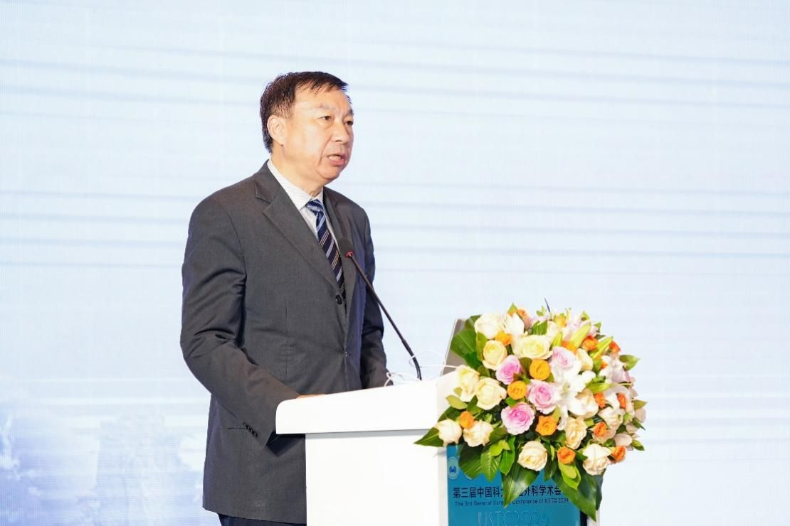 舒歌群对大会的召开表示热烈祝贺。他指出,中国科大作为一所有着红色基因、创新血液的世界知名大学,始终牢记嘱托、笃行不怠,全力以赴建设具有中国特色、科大风格的世界一流大学。近年来,以附属医院为主要载体,着力建设“科大新医学”,取得了一系列瞩目成绩。他希望,汇聚了众多院士和知名专家的第三届中国科大普通外科学术会议,能够聚焦专业前沿和学术热点,传递专业领域新理念、新技术、新方法,深入探讨学术发展的热点话题和难点问题,进一步传播理工医交叉融合、医教研协同发展的理念,再一次以“科大智慧”助力全国普通外科发展进步。