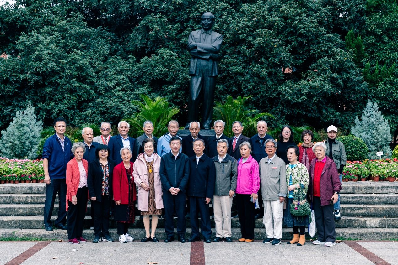 座谈会结束后,校友们在东区天使路举行5901班级纪念地砖安装及捐赠仪式。校长常进参加仪式,并在东区郭沫若铜像前与校友们合影留念。常进欢迎老校友们重返母校,对老一辈科大人的高尚品格和重要贡献表示崇高的敬意和衷心的感谢,祝愿老校友们身体健康、幸福美满。
