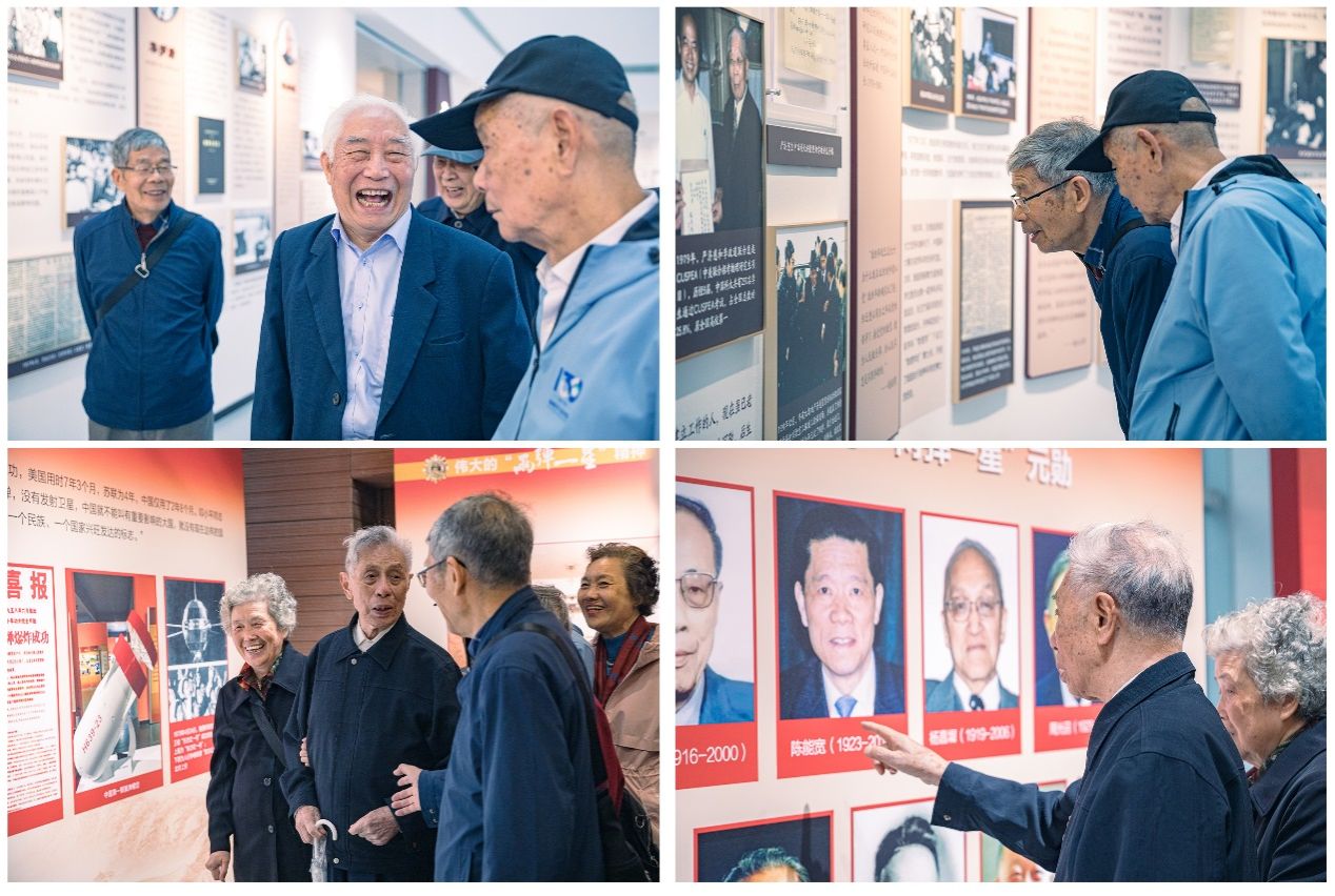 仪式结束后,校友们在东区老图书馆参观中国科学院与“两弹一星”纪念展。在展览中,老校友们看到了严济慈、钱三强等多位当年恩师的照片,回忆涌起,感慨万千。