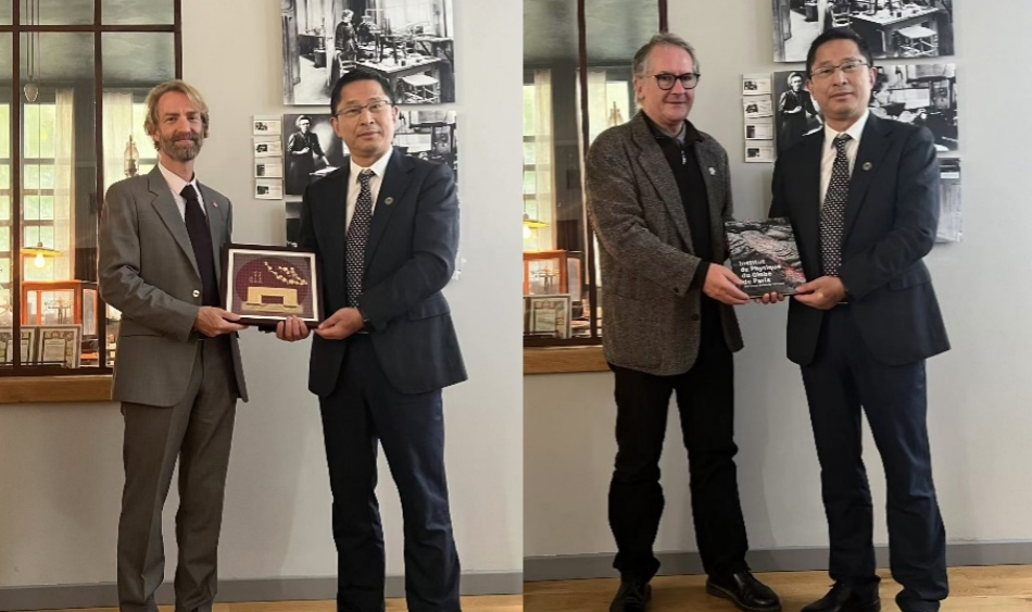 在巴黎西岱大学,代表团与国际事务副部长Antoine KOUSHNER教授、巴黎西岱大学下属巴黎地球物理学院(IPGP)院长Marc CHAUSSIDON教授等会谈。双方回顾了数学和地球物理等领域的合作基础,就探讨签订校际合作备忘录和学生交换协议达成初步意向,积极探讨加强学生交流、开展联合培养、拓宽学科领域、优化法语语言培训等具体合作举措。