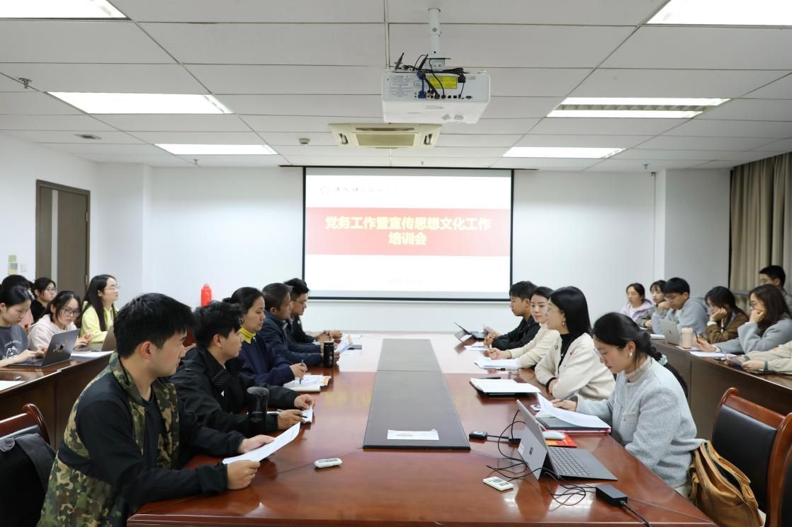 为深入学习贯彻党的二十届三中全会精神,深入贯彻落实习近平总书记关于党的建设的重要思想和习近平文化思想,推动基层党建工作再上新台阶,11月1日,公共事务学院在管理科研楼1108会议室举办党务工作暨宣传思想文化工作培训会。学院各党支部全体委员,院团委委员,院研会主席及宣传骨干,各团支部书记及宣传委员等参加培训会,会议由学院党委副书记蒋文娟主持。