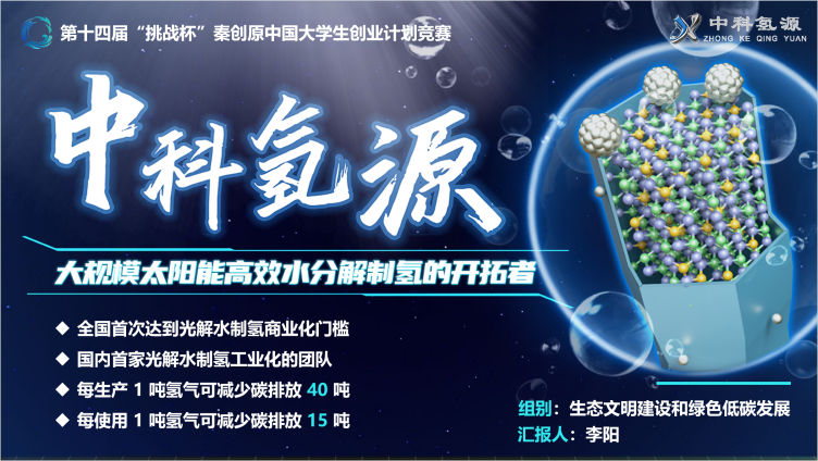 项目名称:中科氢源-大规模太阳能高效水分解制氢开拓者