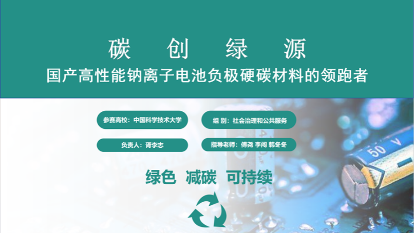 项目名称:碳创绿源-国产高性能钠离子带电池负极硬碳材料的领跑者