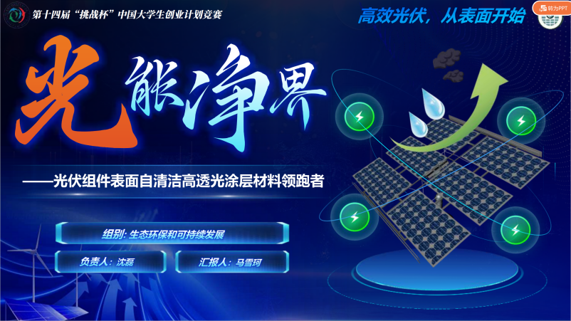 项目名称:“光能净界”-光伏组件表面自清洁高透光涂层材料领跑者